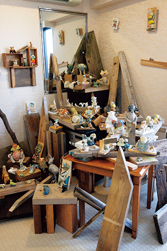 解体して素材となる作品は、木の板を彫刻刀で彫って画面をつくる木彩画や、麻や綿のキャンバスに描いた油絵、陶芸作品、版画やドローイングの紙作品など、多岐に渡る。