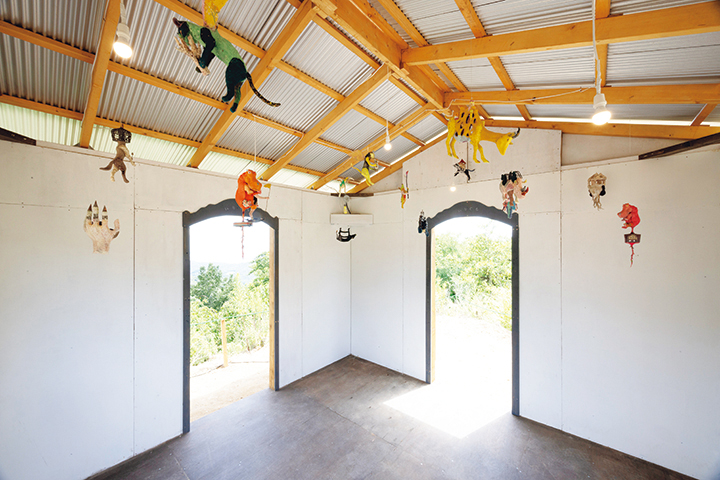 公開制作で生まれた動物達は、楽しげに浮遊しているようであると同時にどこか悲しげに吊り下げられているようにも見える。